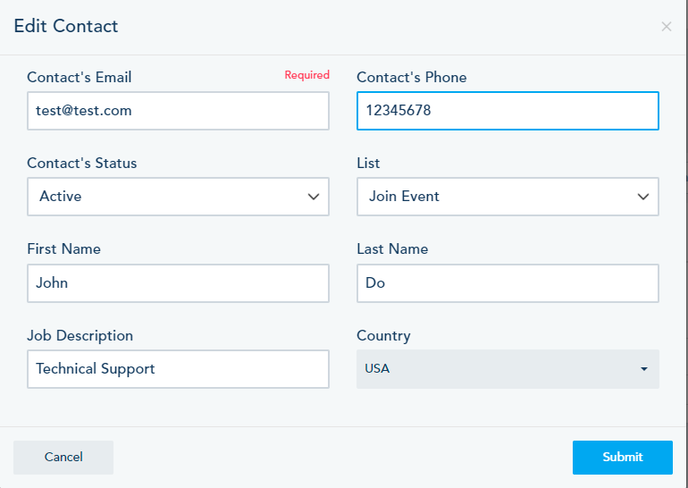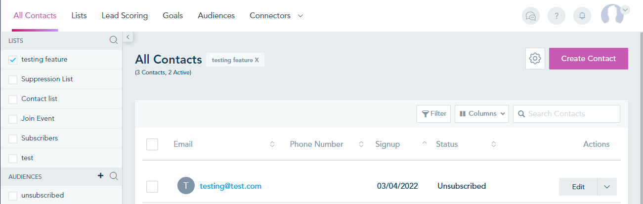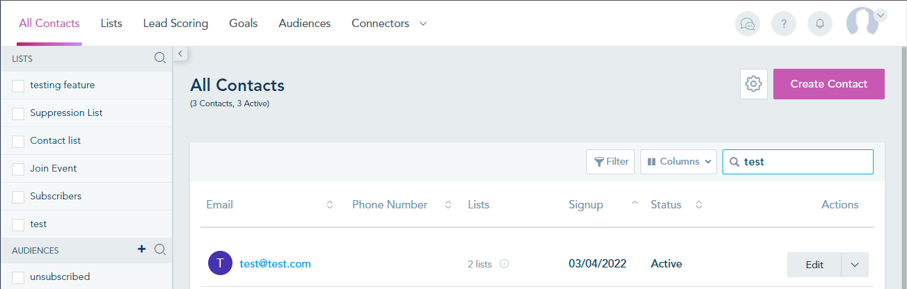 When you import or create contacts, their status is marked as Active by default (as seen below).