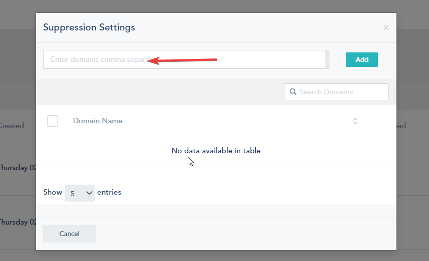 A pop-up will show where you can enter one (or more) domain(s) that you want to suppress (see picture below).