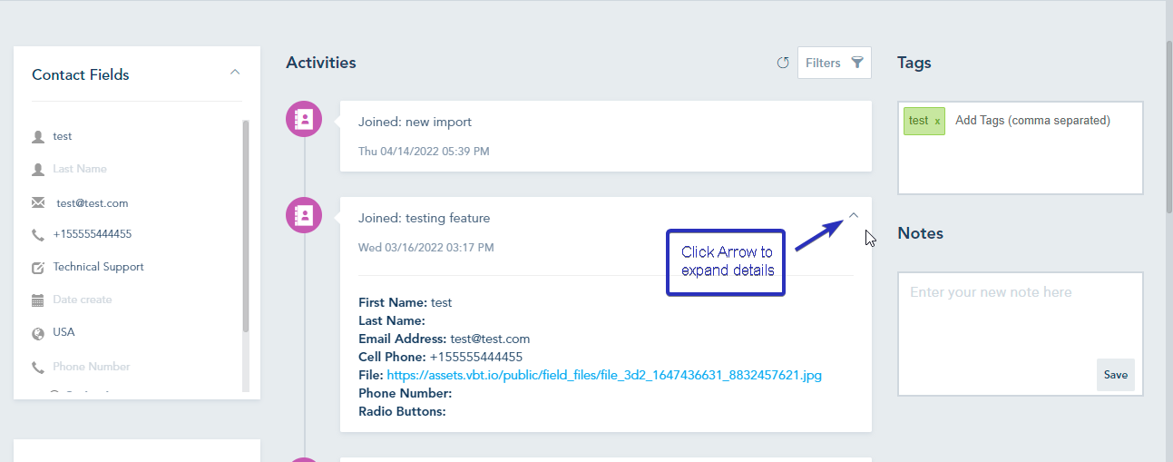 You can filter by engagement type and expand the details to view the details of that engagement: