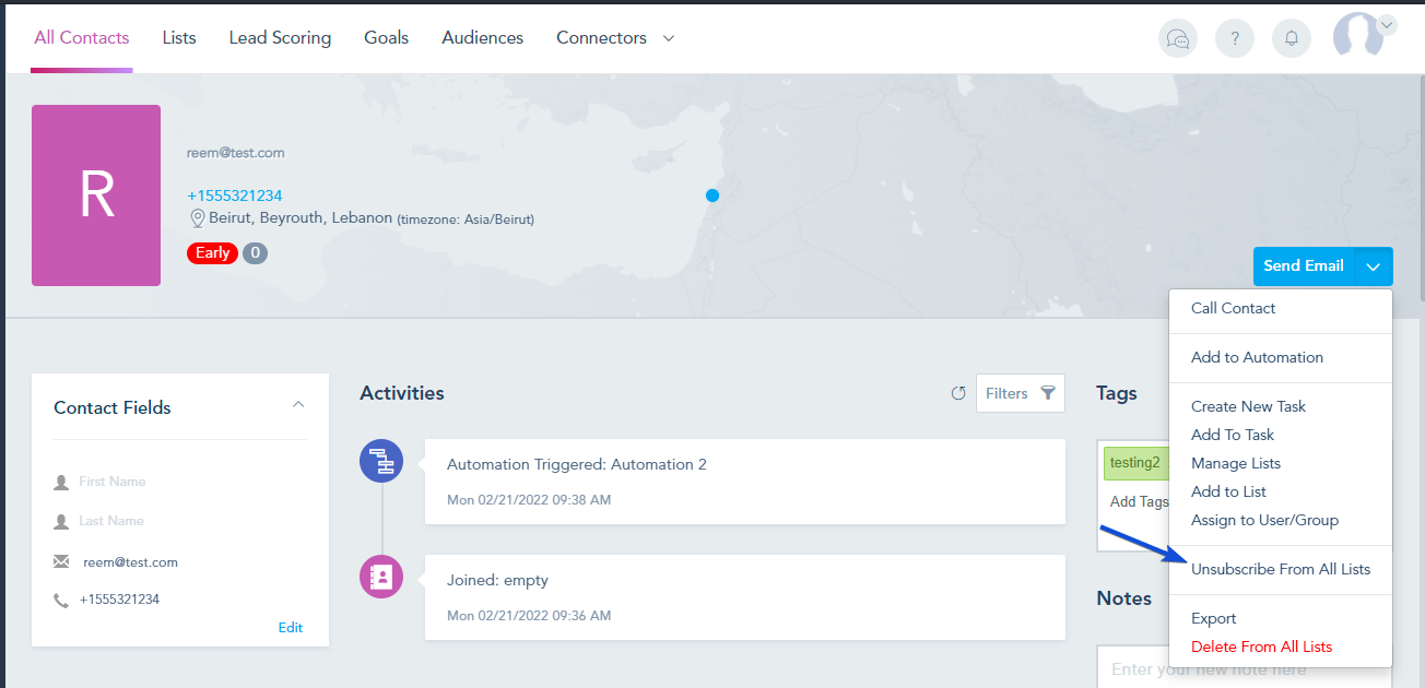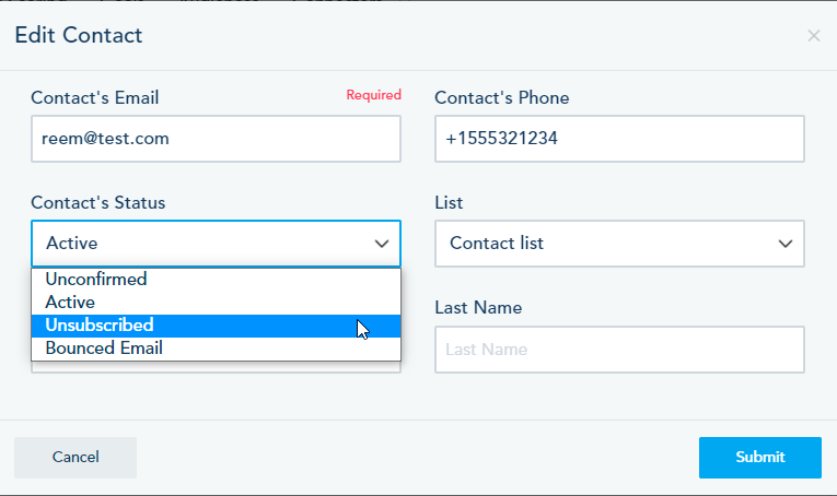 You can choose to Unsubscribe this contact from a specific list or from all lists.