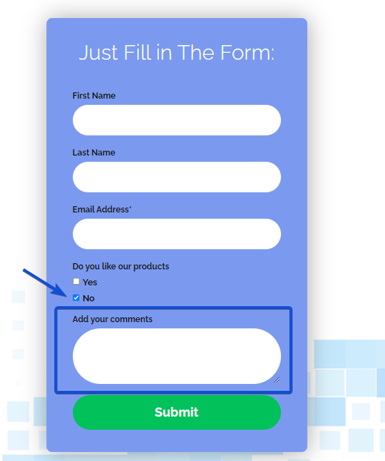 Fill out the form and observe that the conditional field is displayed only when the rule is matched.