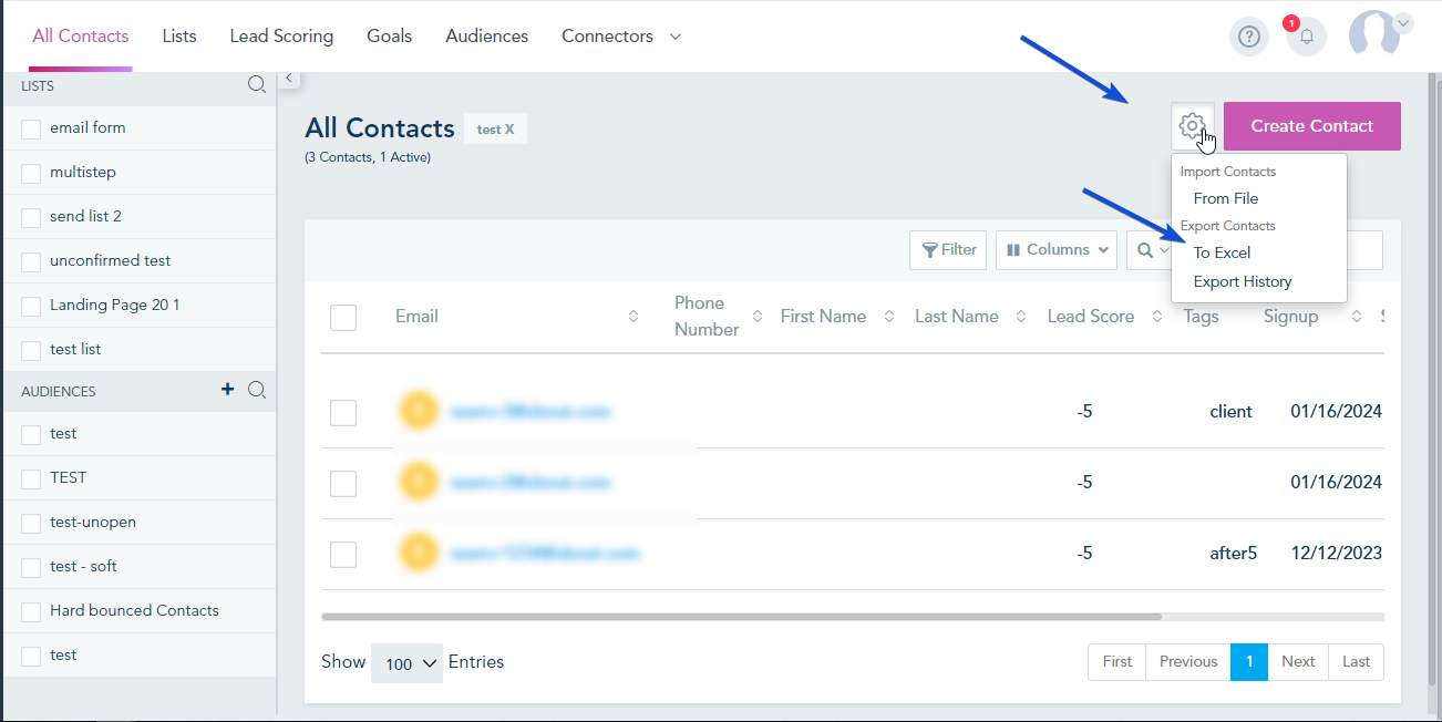 Once you selected Tags and all the list's fields that you want to export, Export Contacts To Excel.