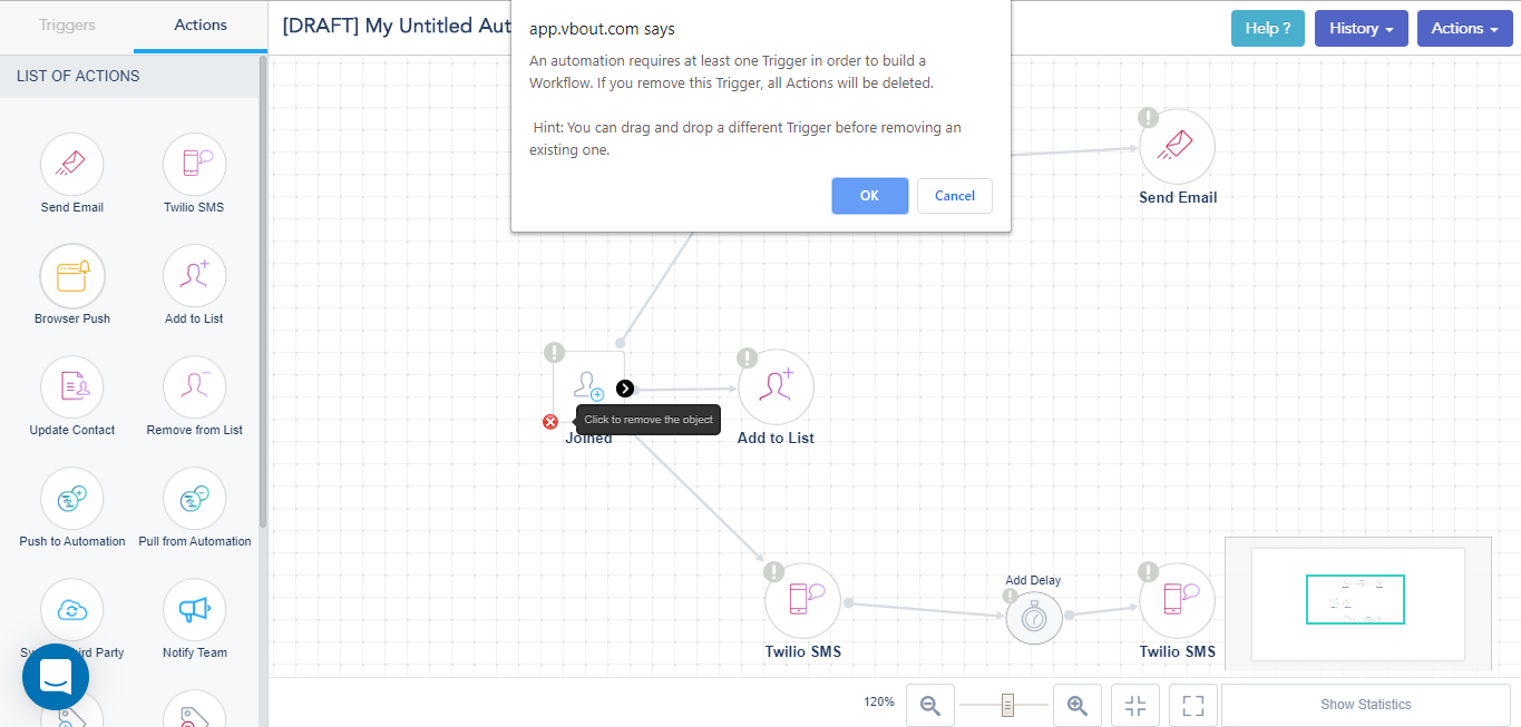 - Remove from List: This action removes contacts from a specified list. Be careful with this action because removing a contact will delete all his related email campaign data (i.e. Clicks and open rate).