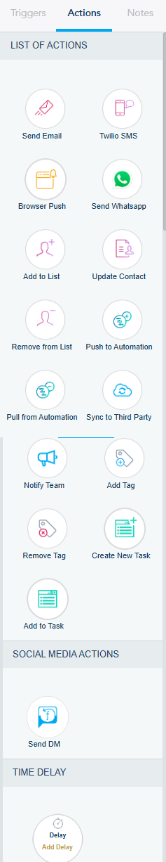 - Add Delay: This action adds a delay between a trigger and an action, or an action and an action. You specify the delay that you want.