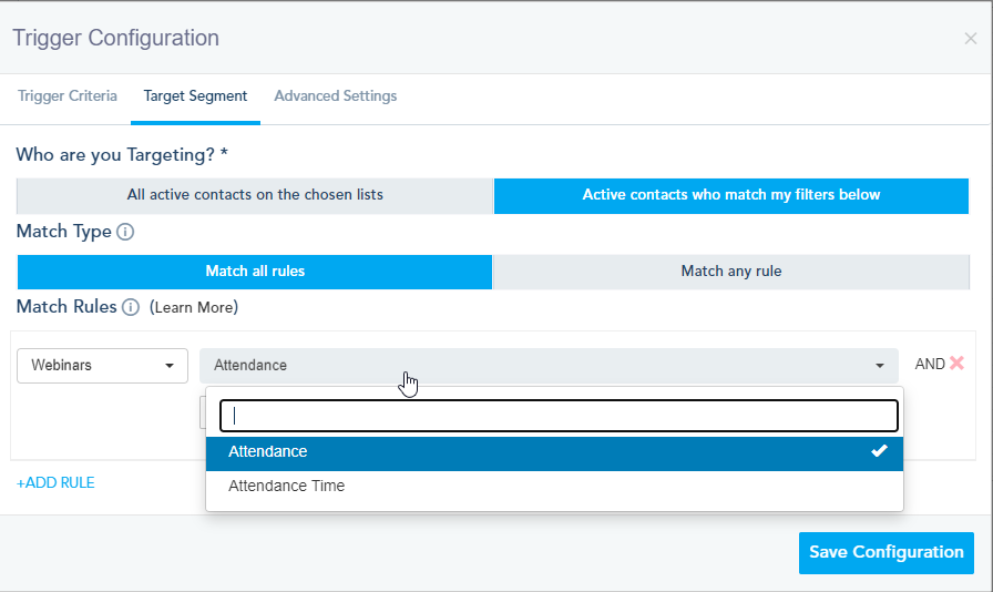- Attendance Time: The contact attended a specific webinar for a specific time.