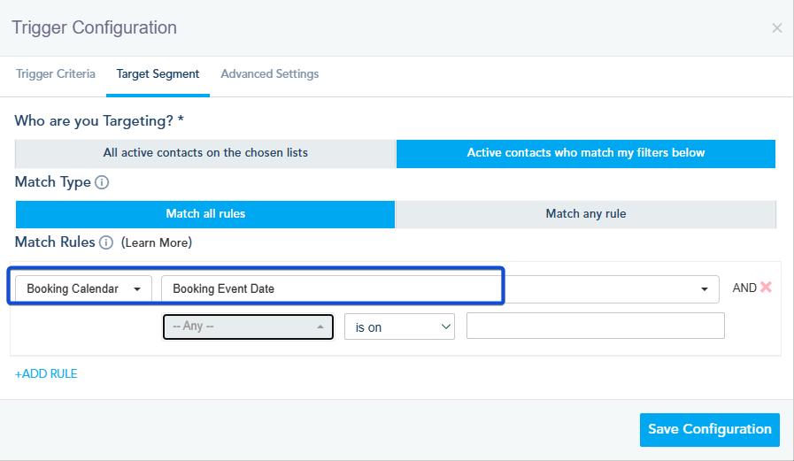 - Booking Event Calendar: The contact has booked an event on a specific date.