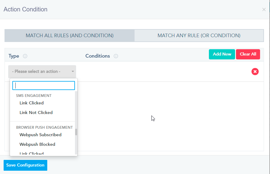 - Link Clicked: User clicks on a link from an SMS you have sent.
