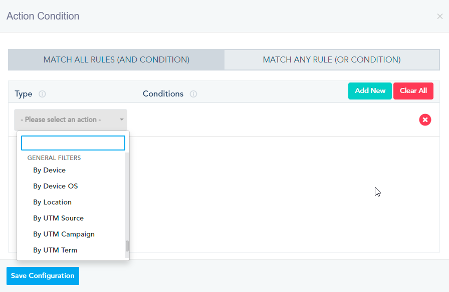 - By UTM Campaign: User’s campaign matches your defined criteria.