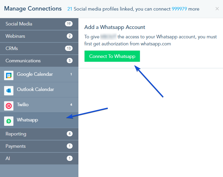 You'll need to connect your WhatsApp account to the platform. Follow these steps: