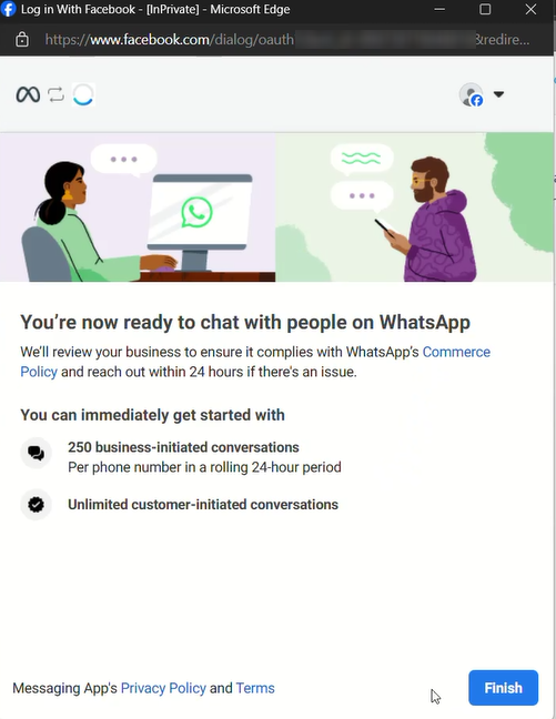 Note: Ensure your Facebook Business Account is verified, with an active billing profile, as WhatsApp charges are directly billed by Meta. Please check this link for more details on pricing in your country.