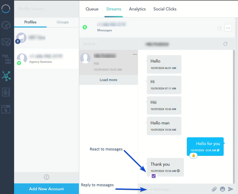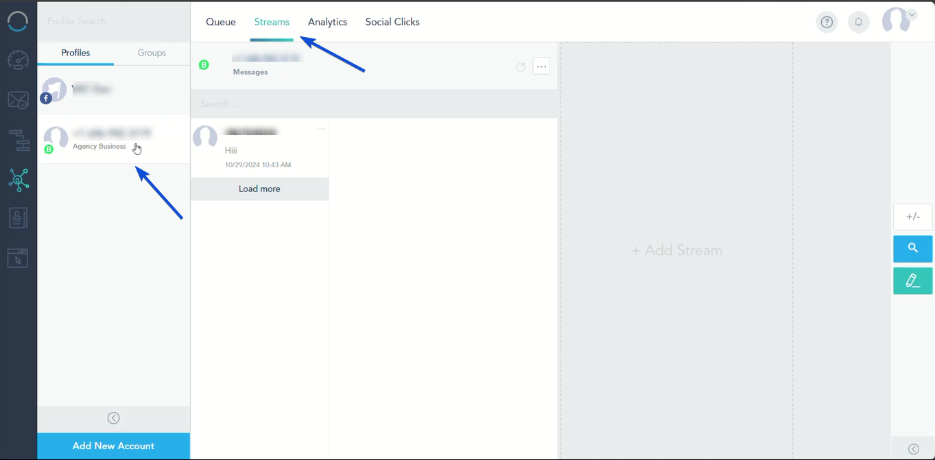 Choose your WhatsApp Account and the contact number you wish to check its stream.