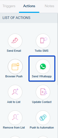 Add a trigger and the "Send Whatsapp" action from the list of actions