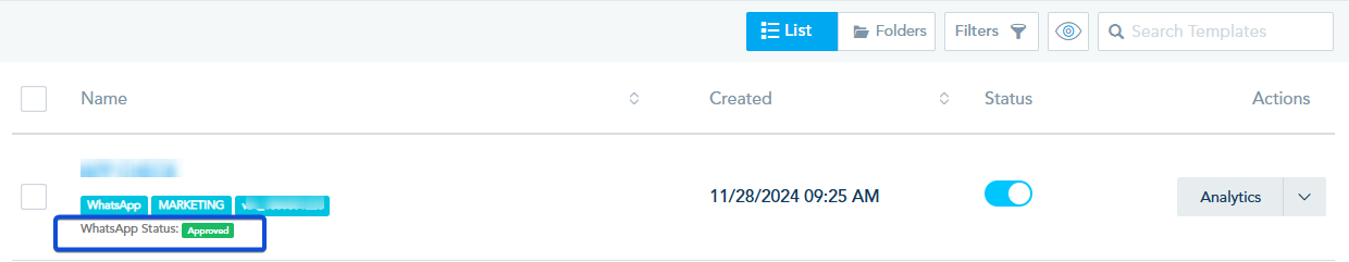 Only WhatsApp templates with "Approved" status can be used to send WhatsApp messages.