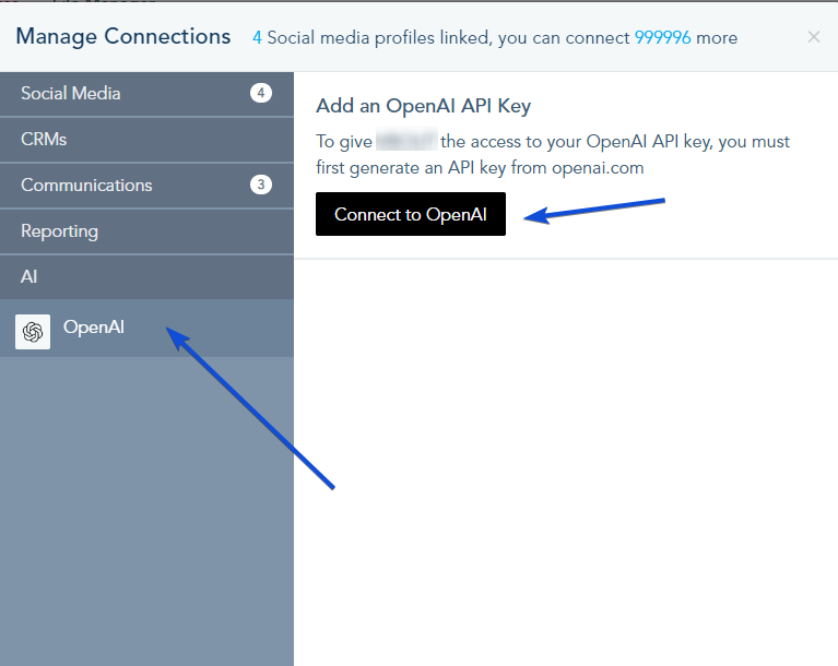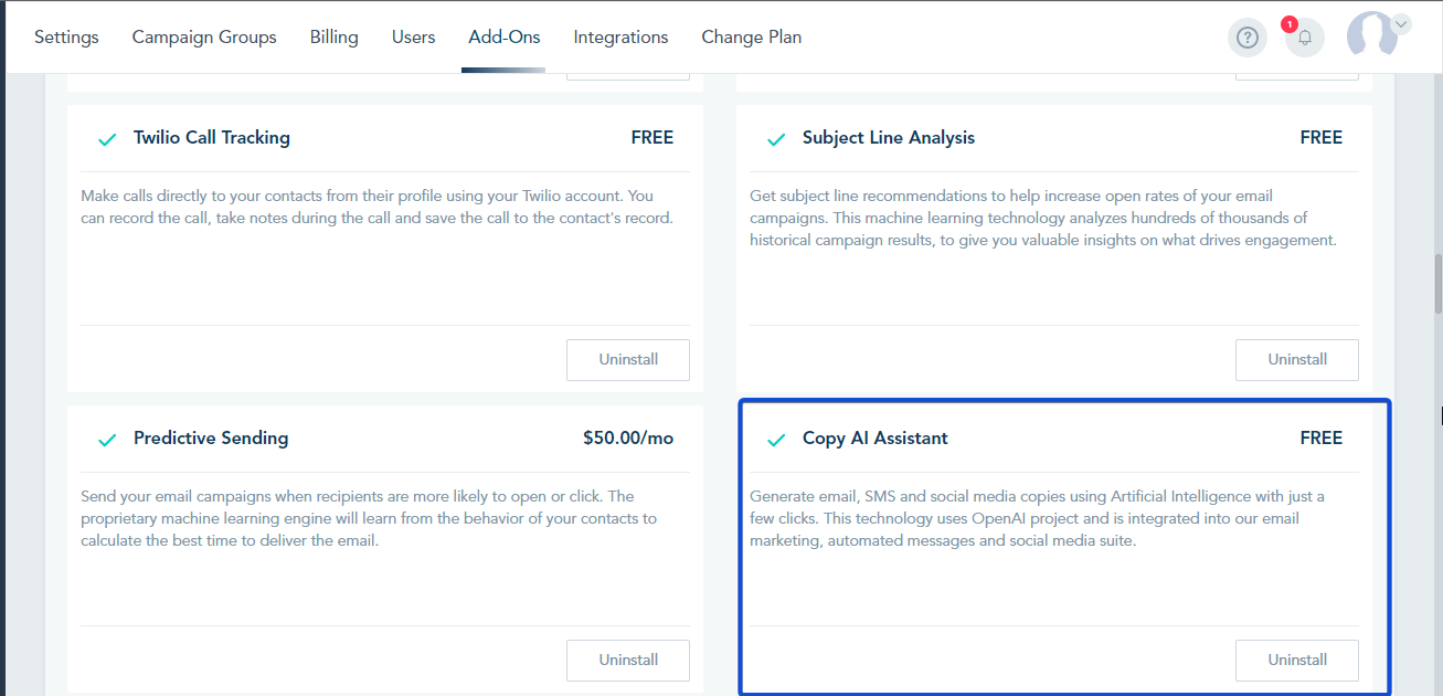 To start using this feature, you need to install the Copy AI Assistant add-on from the Add-ons section or connect your own OpenAI account (free of charge) by navigating to the Connection Center and clicking on "Connect to OpenAI."