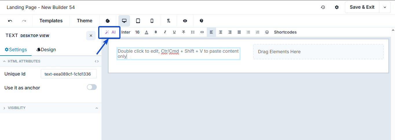 - You can find the AI Content Assistant while editing a heading or text block in your landing page.