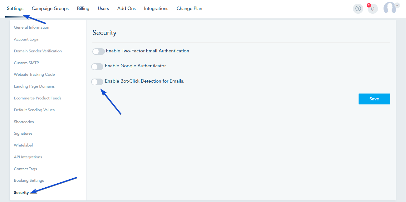 - Toggle on the option "Enable Bot-Click Detection for Emails."