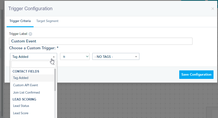 Tag Added: Trigger contacts based on a specific tag added or not.