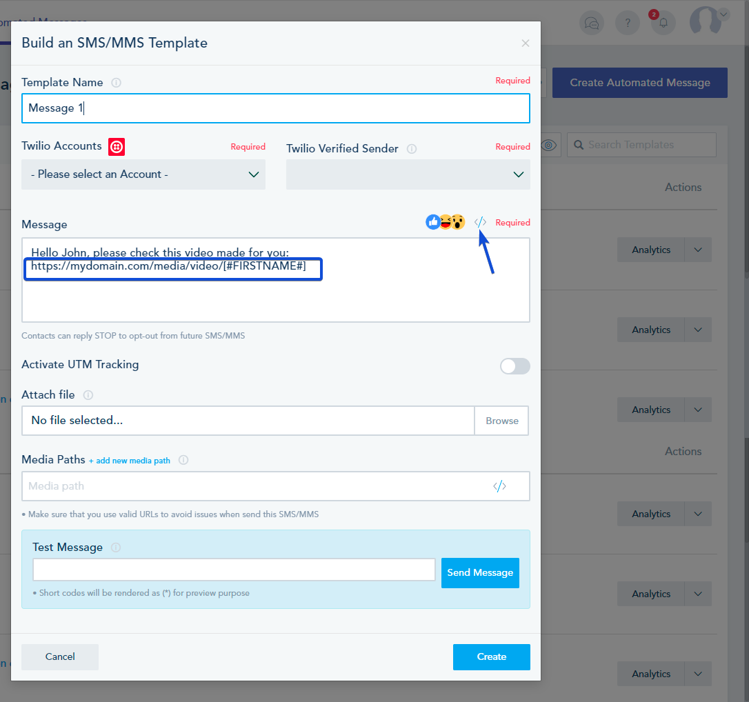 You have the option to personalize your SMS message on the platform using Shortcode.