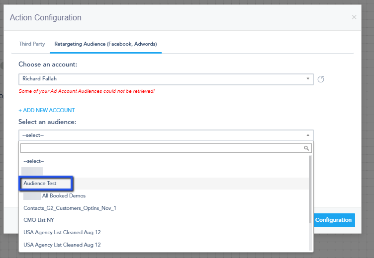 5. Now that audience will appear on the Automation --> Sync to third party option: