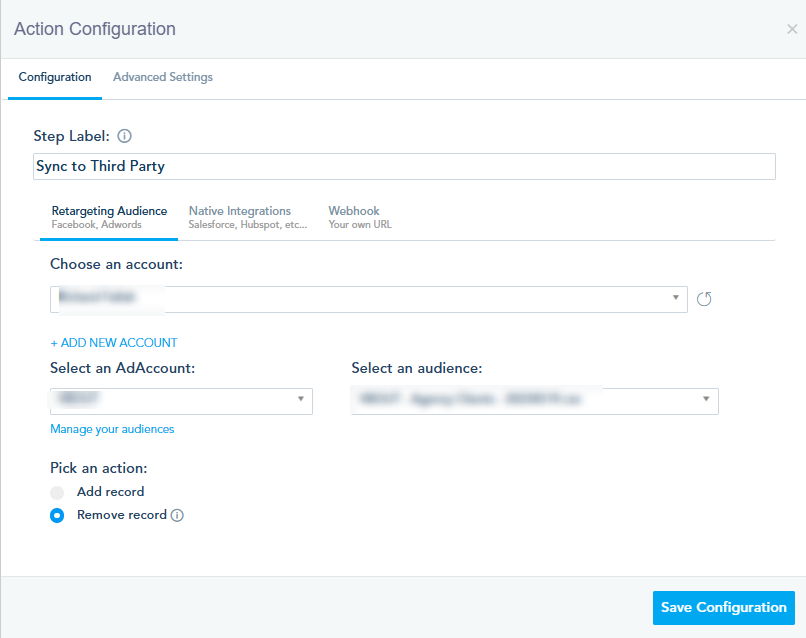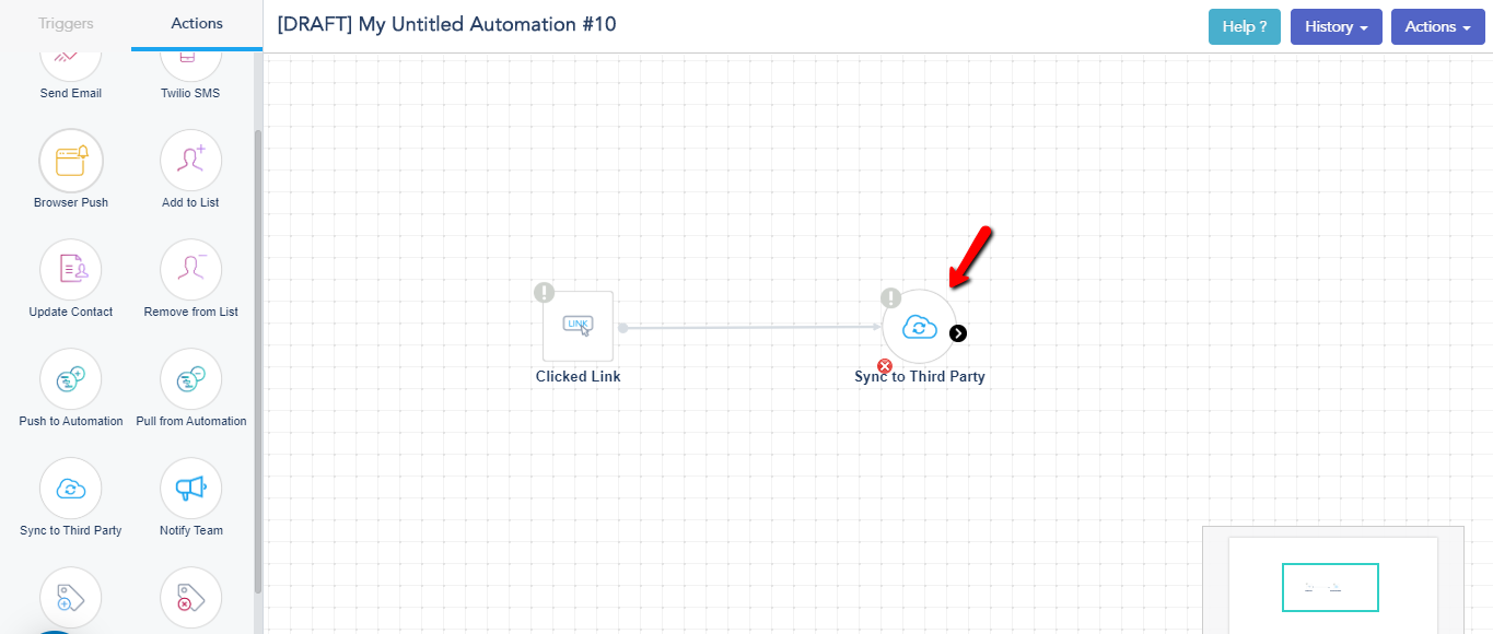 Step 2: Choose the action “Sync to Third Party” and configure it: