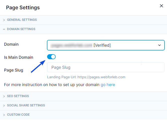 Go to Settings -> Landing Page Domains, click on Add a Custom domain.