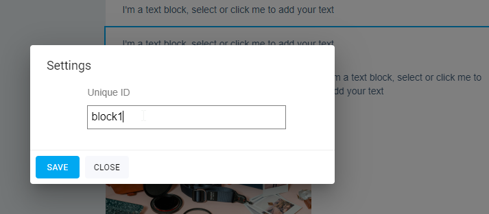 To add an Anchor Link, click on the block settings where you wish to 'jump to', add a unique ID for the anchor.