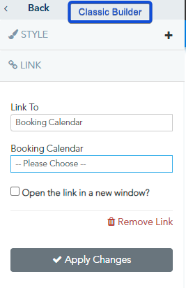 The Booking calendar option shows you all the booking calendars created on your account to choose from.