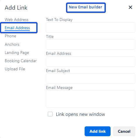 Using Email New builder