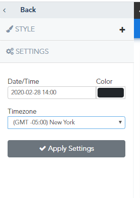 The same rule applies to the countdown block, you will be able to edit its settings and specify the targeted date and time.