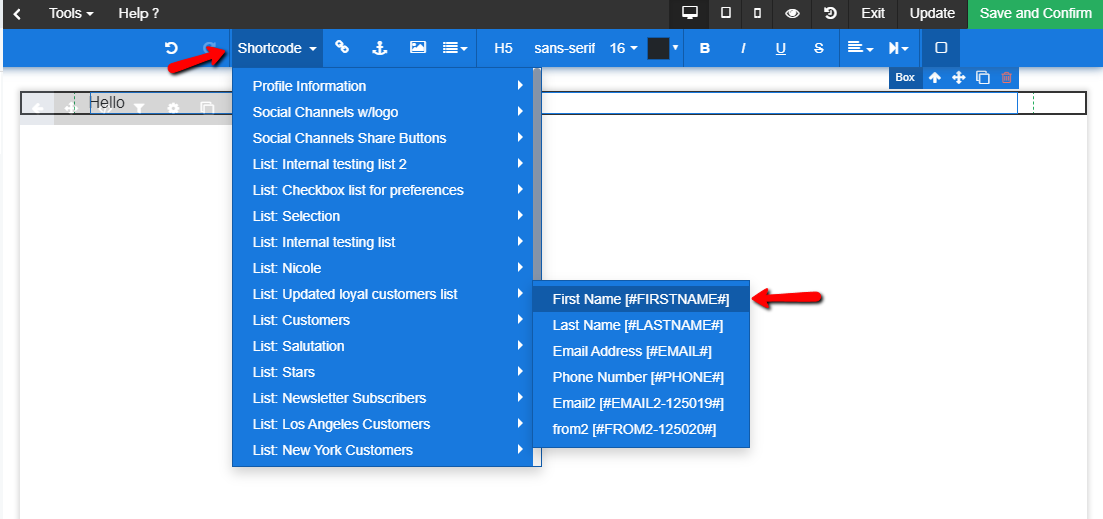 [#FIRSTNAME#] will be replaced with the First Name value from the list chosen.