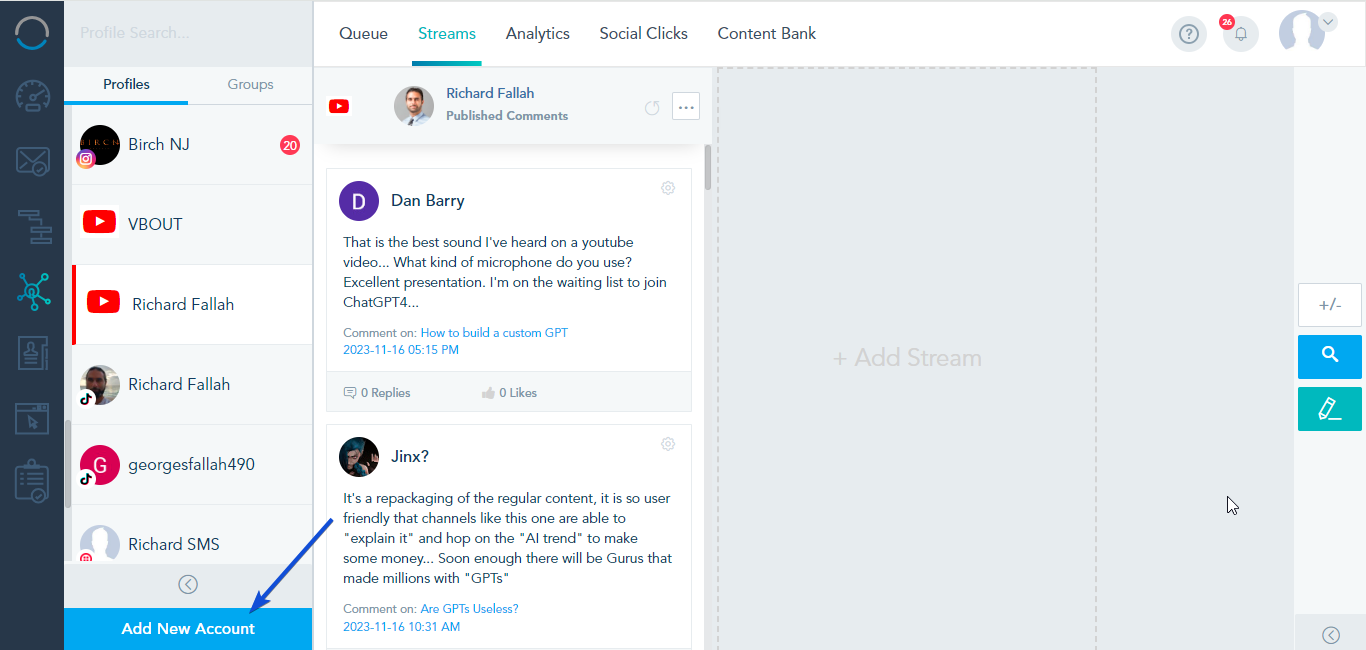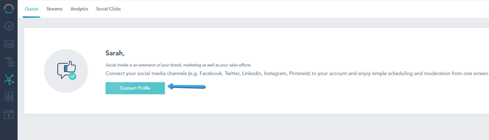 You can connect and manage new profiles to your Social Media suite using Social. To access Connection Center, you can either click on the Connect Profile as a new user: