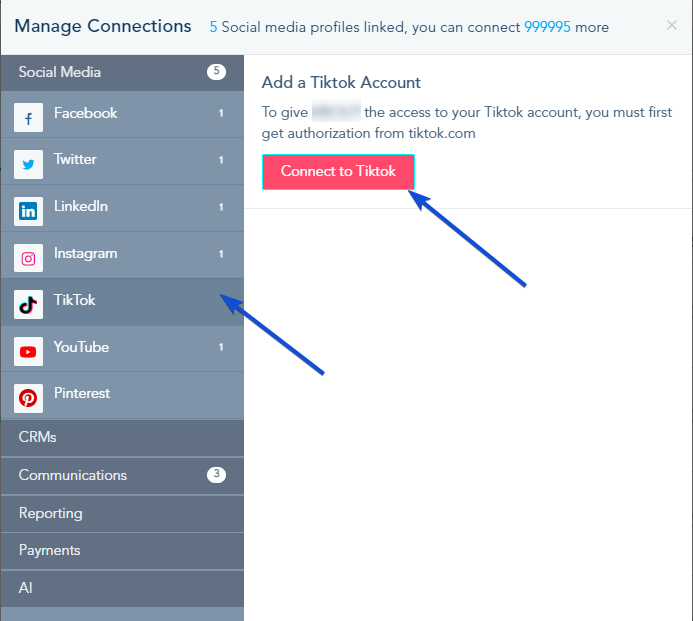 You'll need to connect your TikTok account to the platform. Follow these steps: