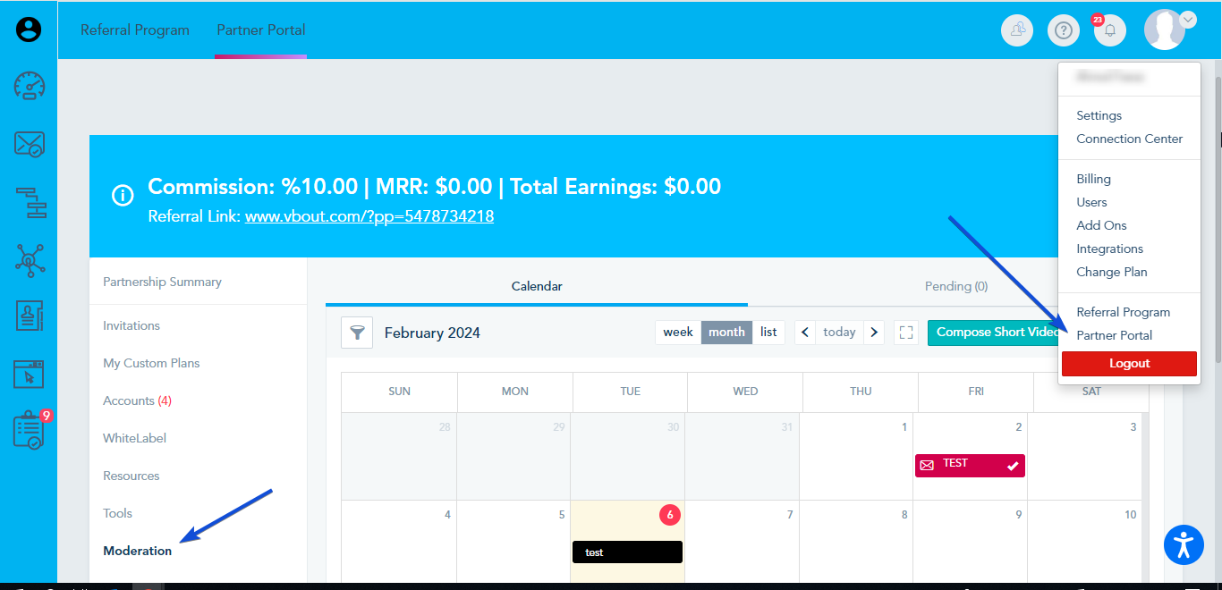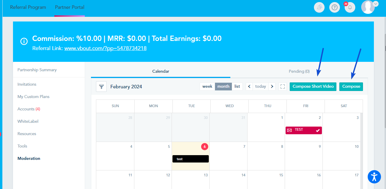 You can manage your subaccounts social media calendar and create posts from your agency partner portal