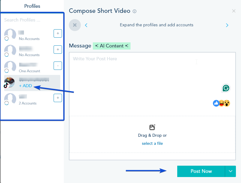 - You'll be prompted to select the social profiles associated with your subaccounts for posting.