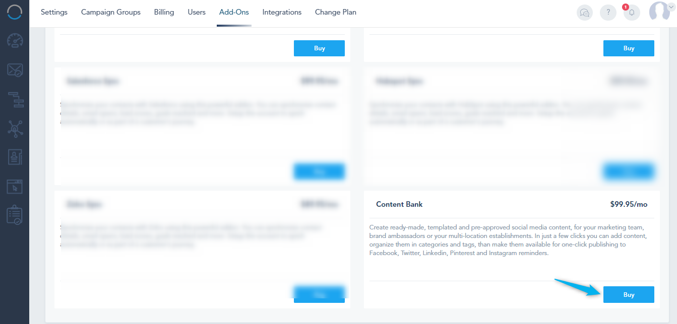 Note that Content Bank is an add-on that must be installed or part of your plan: