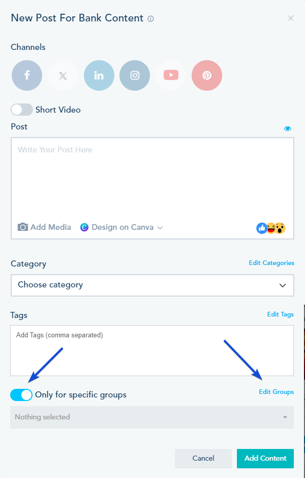Toggle Only for specific groups to assign post to a specific group of subaccounts.