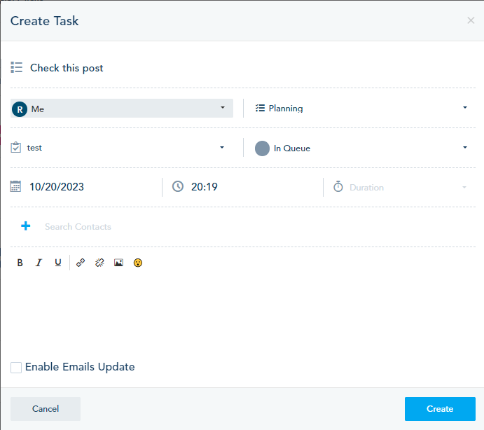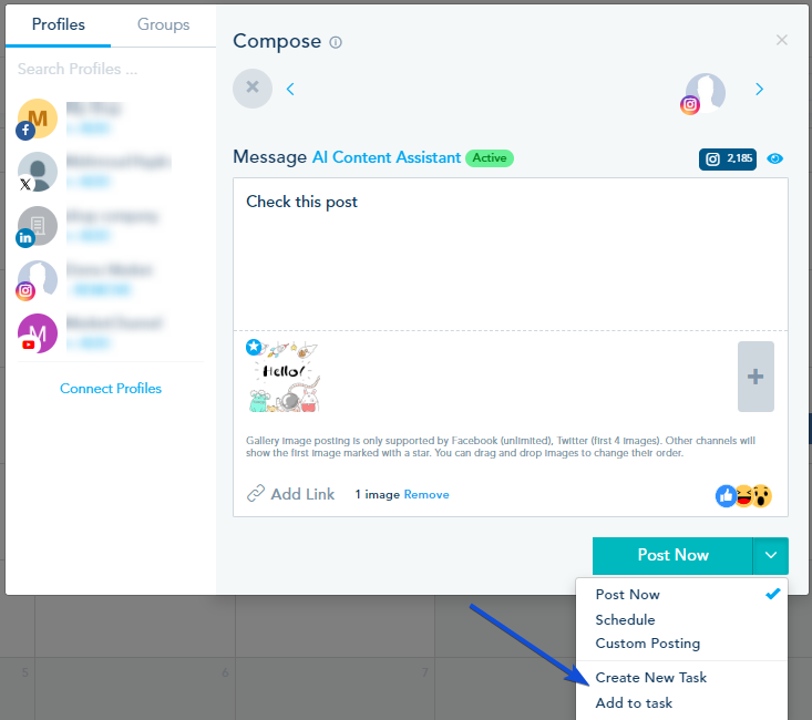This can be accomplished by either creating a new task or assigning it to an existing task after composing your post.
