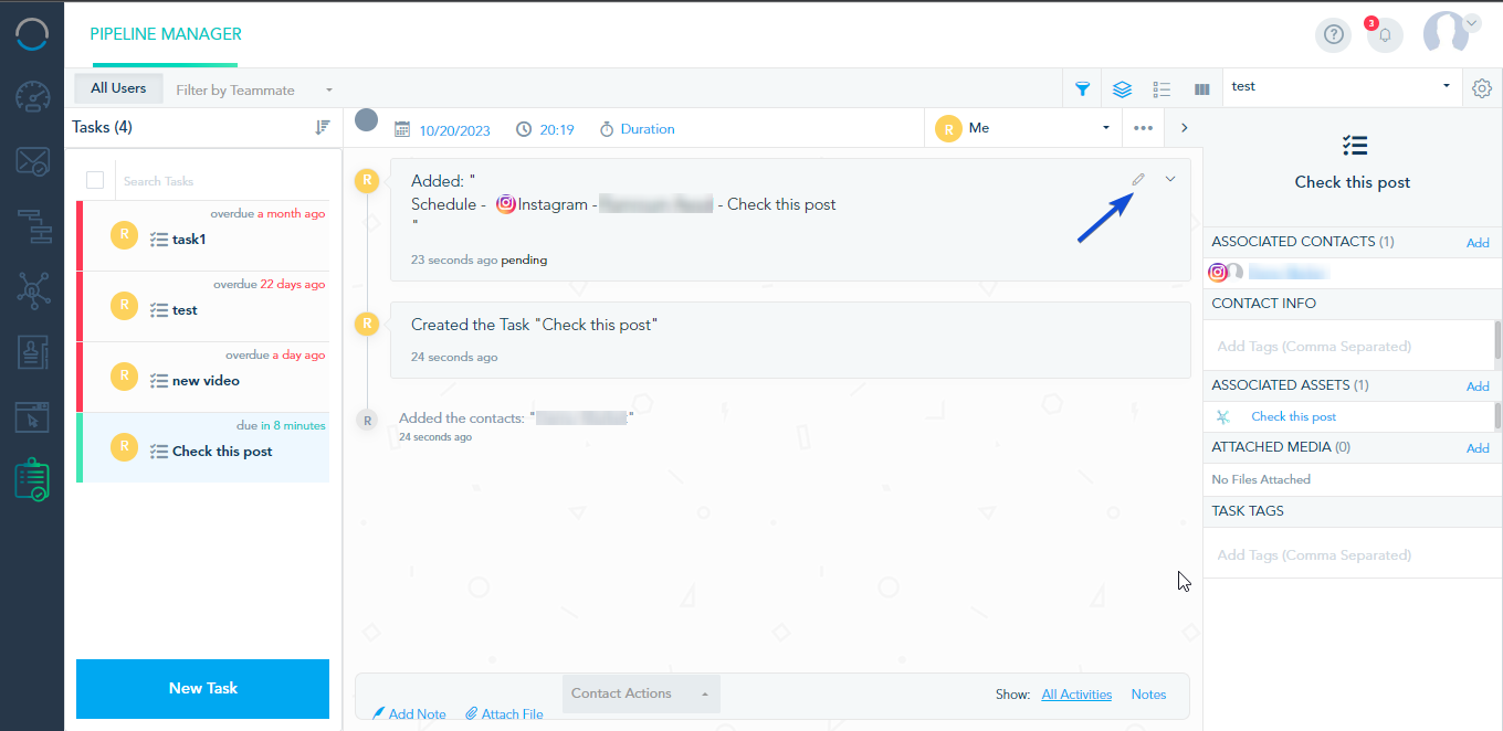 Choose one of the following options: Create New Task or Add To Task if it already exists. When you make a selection, you will be prompted to specify the posting scheduled date and time.