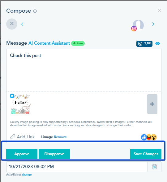 When you create a social media post, you can assign it to your teammates for review and approval.