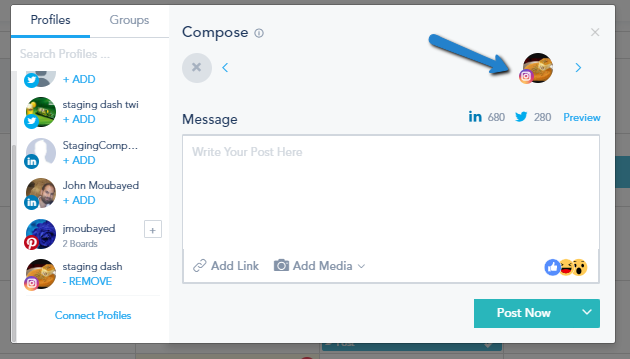 The platform enables you to manage your various Social Media Profiles in one place including Instagram.