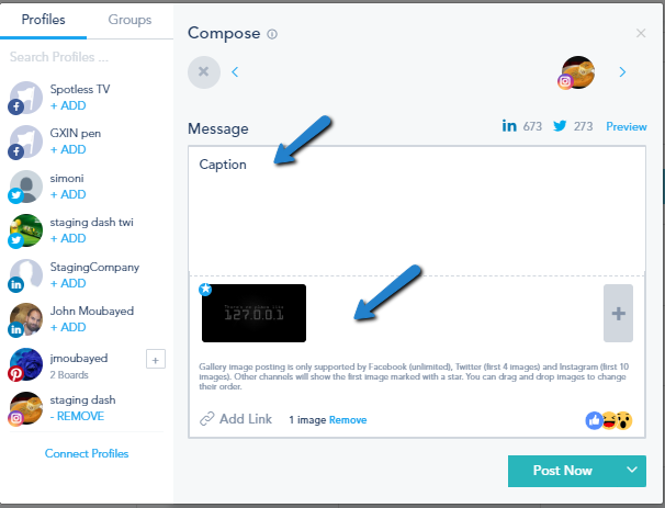 Upload the Image or Video then type in your post