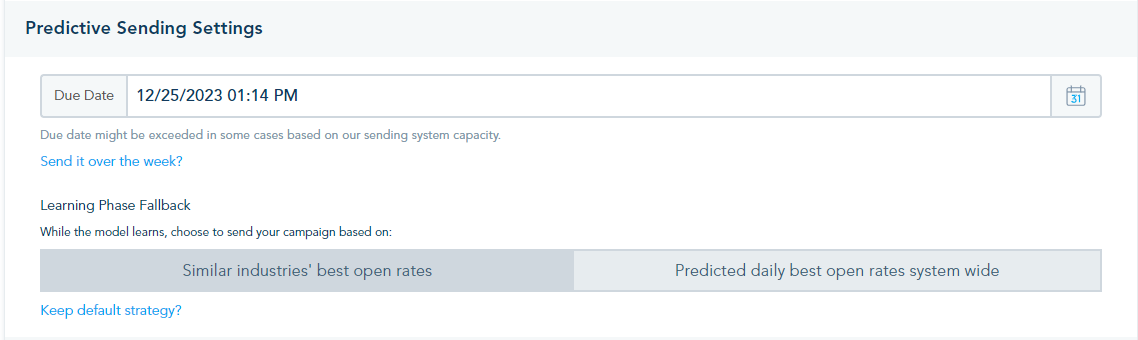 In case you are limited in time to send the campaign, you need to use this option since predictive sending might take time to complete.