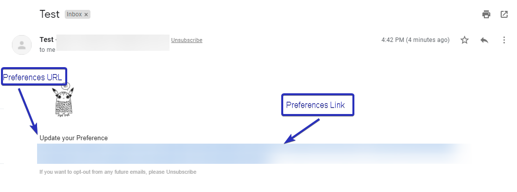 Preferences URL, which is a hyperlinked text of your choice that takes the users to the Preferences page. (Check Step 4)