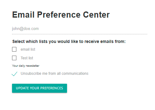 26% of people cite that the reason behind unsubscribing is receiving too many emails. Contacts Communication Preferences or Email Preferences is a way to let your contacts unsubscribe manually from a specific list and choose which lists they want to stay in. This way, they won’t choose to unsubscribe from all your emails at once and won’t be bothered by receiving many emails.
