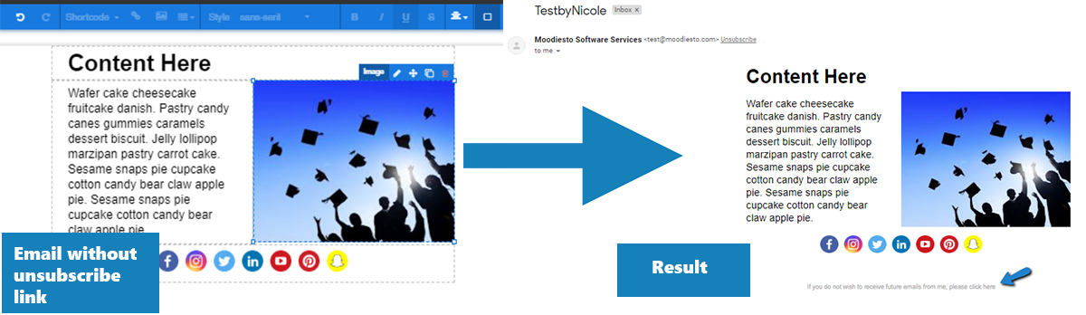 8- You have to include either the UNSUBSCRIBE shortcode, or the PREFERENCES shortcode inside your email, or the system will automatically append an UNSUBSCRIBE option at the bottom of your campaigns