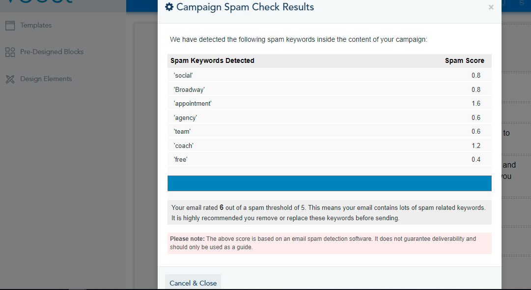 The platform uses SpamAssassin service to score your email content and give you a 'general' benchmark on how your keywords are being scored.