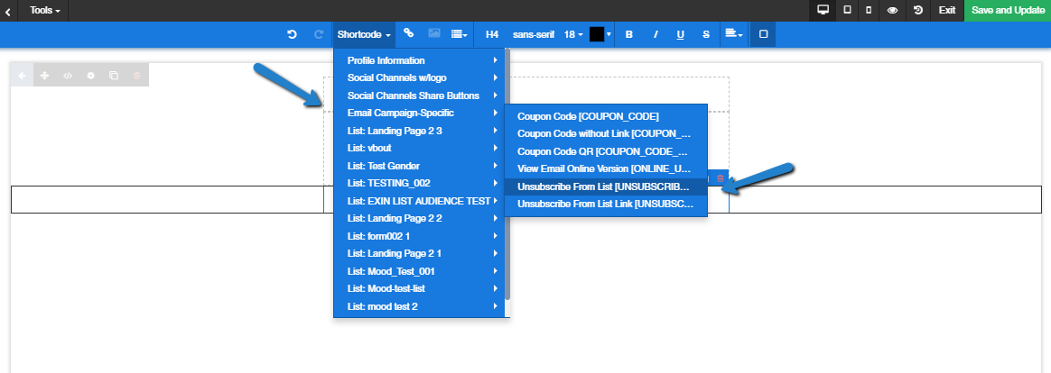 Here’s how you can add an Unsubscribe link using shortcodes: