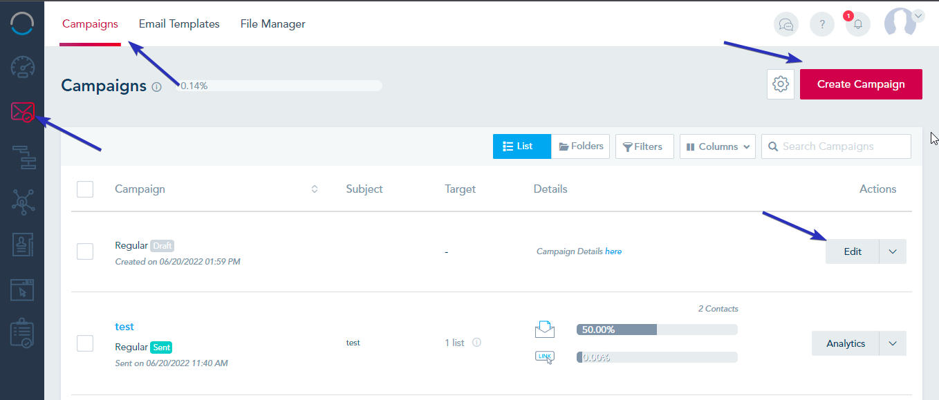 First, go to the Email -> Campaigns page and Edit/Create Campaign.