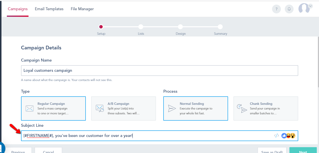 Using Shortcodes makes it easier to personalize your Emails. Below is a step by step guide on how you can use Shortcodes in the Subject Line of Email Campaigns.