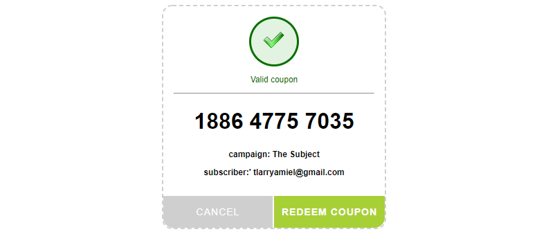 Contacts that receive the Email Campaign will have the Coupon Code link that will redirect to a Coupon Redemption page.